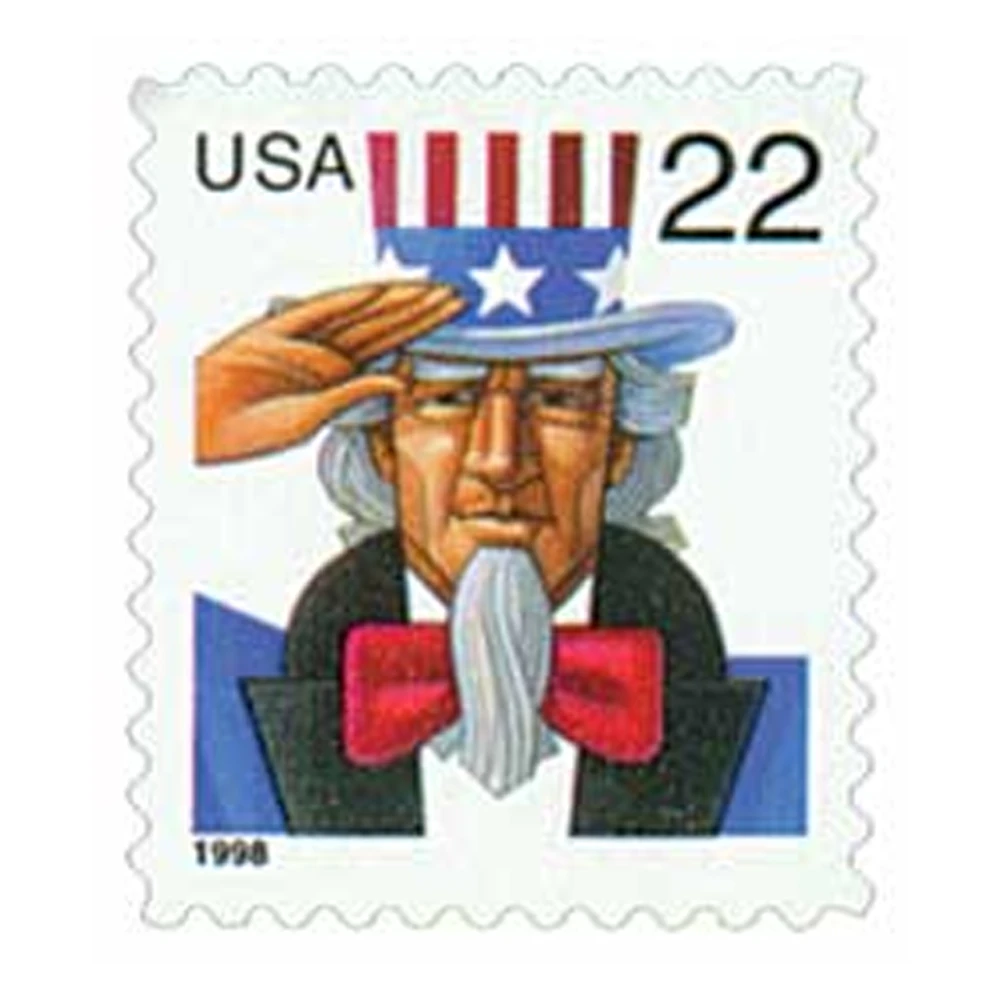 1998 22c Uncle Sam First Class Postage Stamps (Value Stamp Not Forever)