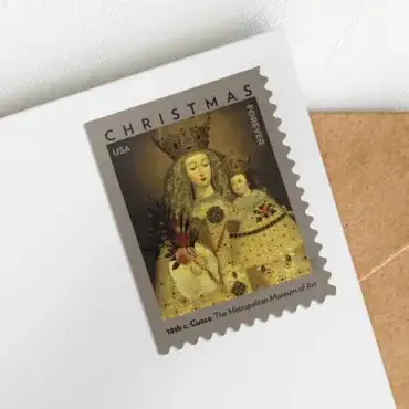 In 2020, the United States Postal Service featured a painting of Our Lady of Guapulo on a Forever stamp. An unknown 18th-century Cuzco, Peru, artist depicted figures in elaborate royal garments, emphasizing the Virgin Mary’s significance to the people of Peru and Ecuador.